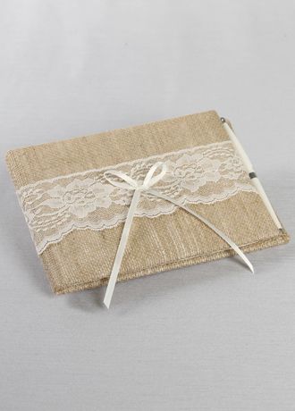 DB Exclusive Burlap and Lace Guest Book and Pen