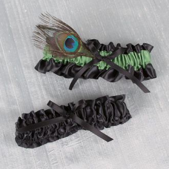 The Paradise Collection Garter set is adorned with a dramatic black band and peacock feathers for an added touch of color and design.