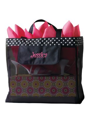Fashion meets function as this polka dot black mesh bridesmaid's tote holds everything your bridesmaids will need for the wedding day. This trendy bag will get plenty of use time and time again. Surprise your bridesmaids with this tote and personalize it to make their very own.