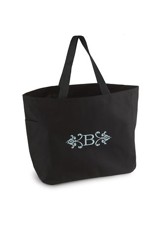 - Black handles. Small inner pocket. One end pocket. Embroidered with a single initial.