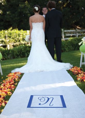 - Personalized area is approximately 34" x 48" and is printed about 4 ft from the front of the runner (where the alter would be).