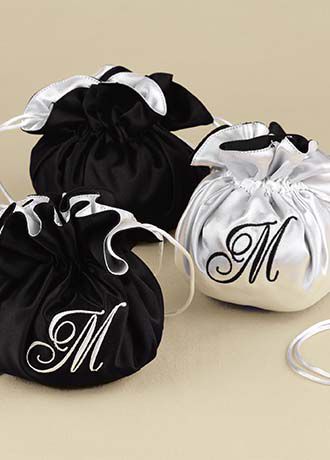 - Personalization: A single initial in your choice of lettering style and Exclusive David's Bridal thread color. Indicate outside pouch color (black or white).