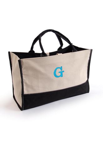 This attractive and sturdy personalized tote bag can haul just about anything, from personal items and office supplies to your favorite puppy! Ideal for those times when a large bag is too cumbersome, this smaller lightweight tote is fashioned in black and tan and has sturdy handles for easy carrying. Personalize with a single initial in your choice of David's Bridal exclusive coordinating colors!