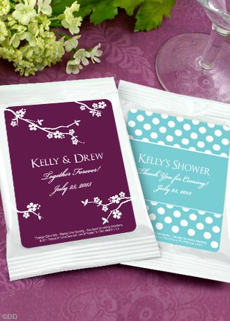 Personalized Margarita wedding favors bring a dramatically different flair to your special occasion... perfect for any wedding... creating casual elegance and complimenting your event! Bridal couples that want a really fun and festive wedding favor for their guests can now personalize packages of Margarita drink mix making a wedding favor idea that's in step with the latest trends. The Margarita is the No. 1 selling cocktail in the world and evokes a sense of paradise, a laid-back lifestyle and a tropical retreat. Choose the perfect design to match your theme and personalize it by selecting your color from a variety of David's Bridal Exclusive ink colors.