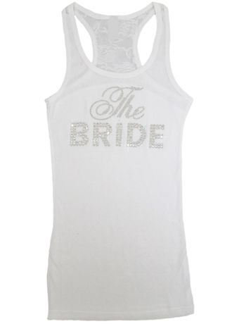 This adorable tank features a dazzling double row of "The Bride" rhinestone design. This is the perfect tank for a bachelorette party, shower or pre-wedding errands! This is also perfect for getting ready for the big day!