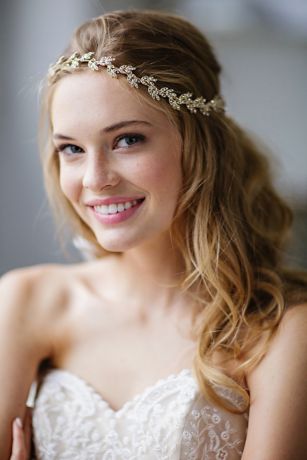 You have beautiful options with this delicate, hand-painted adornment. The sparkling leaves and crystals can be worn as a halo headband or a sash with the included ribbons, or fastened into place with your own bobby pins.