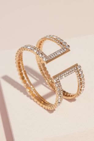 An elegant addition for special occasions, this adjustable cuff is composed of parallel strands of shimmering crystals.