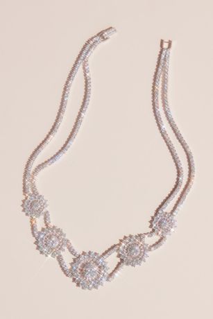 Two strands of crystals link together five gleaming medallions on this statement necklace.