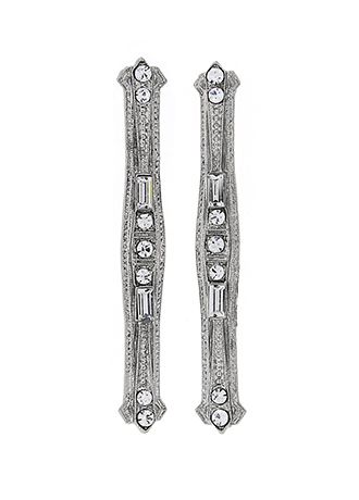 Inspired by the gilded styles of the late Victorian and early Edwardian eras, this pair of elegant bar pin hair fasteners feature lovely silver tone and Czech crystal accents typical to the time. With delicate styling and a great attention to small details, these clips will add an air of elegance to your carefully tended coiffure.