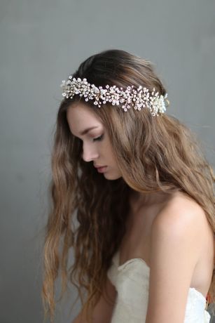 Look boho-beautiful in this bridal hair vine, bursting with hundreds of tiny beaded flowers, freshwater pearls, Swarovski crystals.