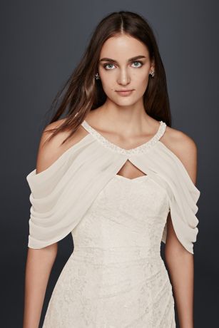 Add a unique accent to your wedding dress with delicate pleated chiffon sleeves. Punctuated by pearls at the neckline, this topper pairs perfectly with strapless dresses.
