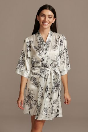 This robe is the perfect piece for getting ready on your wedding day and beyond. The sleek satin is covered with a pattern of florals that appears hand-drawn, adding to the luxurious feel of the piece.