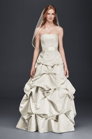 Drop-Waist Satin Ball Gown with Pickup Skirt