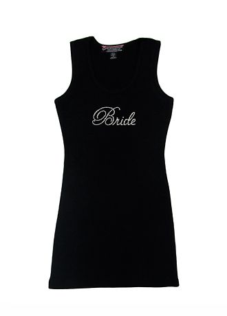 This adorable tank features a dazzling "Bride" rhinestone design. This is the perfect tank for a bachelorette party, shower or pre-wedding errands! Also great to wear while  getting ready for the big day!