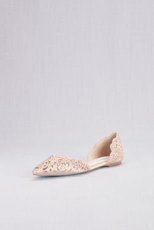 Floral cutouts adorned with gems create this elegant, pointed-toe d'Orsay flat.