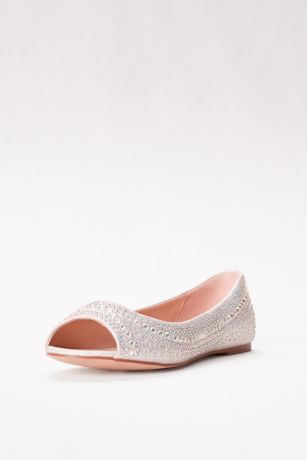 Chic, simplified. This stunning flat with dainty peep toe and shimmery embellishment along the vamp, sides, and back is an easy fit for any special occasion.