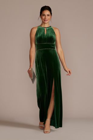 This stunning velvet sheath dress features elegant embellishments and intricate details that will make you feel like a queen on your special day. The keyhole neckline adds a touch of allure, while the figure-flattering silhouette hugs your curves in all the right places. Perfect for a winter wedding or a formal event, this dress exudes sophistication and glamour. Pair it with sparkling accessories and a chic updo for a truly unforgettable look. Make a statement and turn heads in this luxurious velvet dress from David's Bridal.