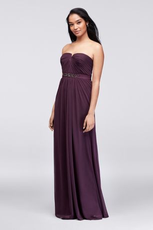 Embellished-Waist Long Mesh Bridesmaid Dress