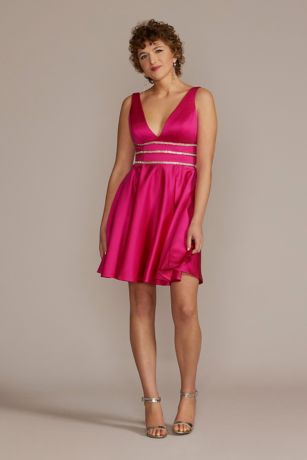 This striking short A-line is party-perfection thanks to a daring plunge neckline and dazzling embellished waist. Whether you're looking to rock something short at prom or searching for your next formal dress, this is a must-have.