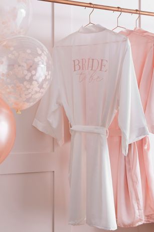 This fun robe ties with a self sash and is embroidered with the phrase "bride to be" on the back.