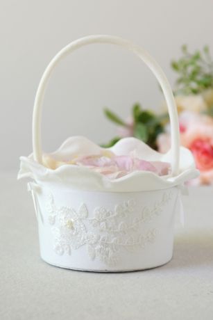 Embroidered with tonal thread and embellished with faux pearls, this pretty basket will delight your flower girl.