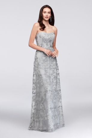 Embroidered Long Strapless Bridesmaid Dress