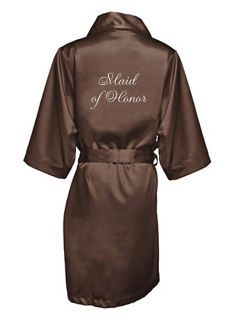 Wrap your Maid of Honor in luxury in this gorgeous silky satin robe professionally embroidered in your choice of font and thread color.