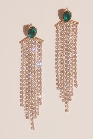 Channel Old Hollywood glamour when you wear this stunning pair of emerald stud earrings with floating strands of crystals that just skim the shoulders.