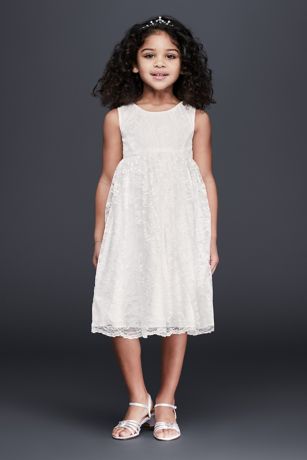 A look that guarantees all of the "awwws," this empire-waist lace flower girl dress is a delightful classic.