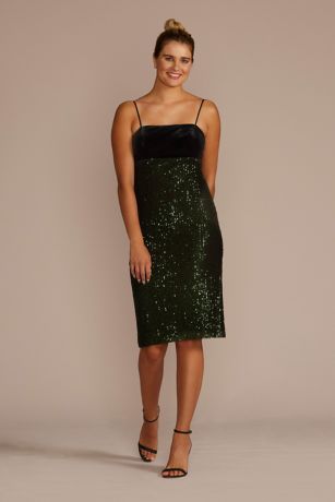 This mixed materials midi dress gives you the best of both worlds with soft velvet on top and a sequin-embellished skirt on bottom. An empire waist feels fresh on this silhouette, thanks to the straight neckline and thin spaghetti straps. Pair with your best heels and accessories and head to GNO or your next special occasion!