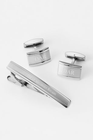 - Personalized with up to 3 characters on each cufflink and a line of text on tie bar in your choice of fonts