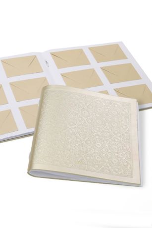 This unique guest book allows guests to write heartfelt messages on the included cards and pop them into the attached envelopes.