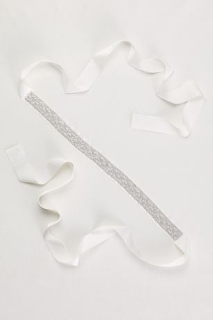 A linear pattern of rhinestones makes this sash glitter as it defines your waist.