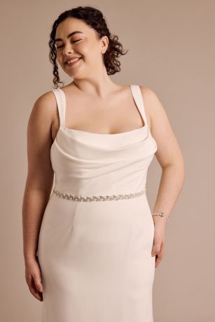 This stunning extended length sash is designed for dress sizes 16W-30W and features delicate pearl and pave crystal laurel leaves, adding a touch of elegance and sophistication to any bridal look. Perfect for adding a touch of sparkle and glamour to your wedding gown, this sash is sure to make a statement as you walk down the aisle. Whether you're looking to add some extra sparkle to a simple dress or complement a more intricate design, this sash is the perfect accessory for any bride. Made with high-quality materials and expert craftsmanship, this sash is designed to last for years to come, serving as a beautiful reminder of your special day. Elevate your bridal look with the Pearl and Pave Crystal Laurel Leaves Sash bridal accessories from David's Bridal.