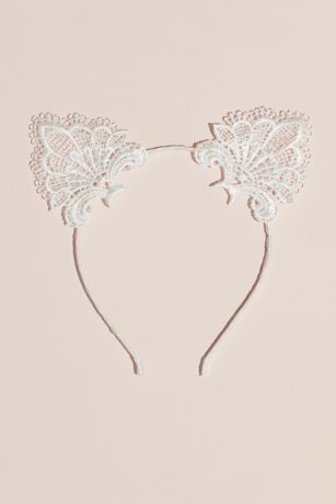 Let's get the bachelorette party started right MEOW. Top your bachelorette party looks with this fun and flirty lace cat ears headband, trimmed with scalloped eyelash lace.