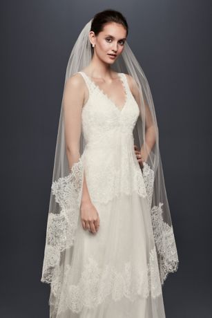 Beautiful eyelash lace creates a soft but dramatic border on this tulle walking veil.