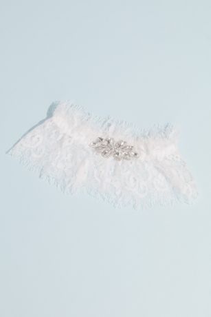 Perfect for a vintage-inspired wedding, this garter features a rhinestone medallion and romantic eyelash lace.