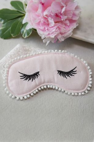 Printed eyelashes and pompom trim add elements of fun to this sleep mask.