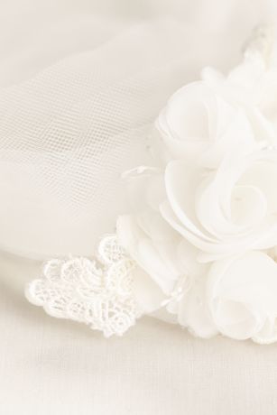 - Floral embellished headband has tulle trails off each side for an airy and whimsical look.