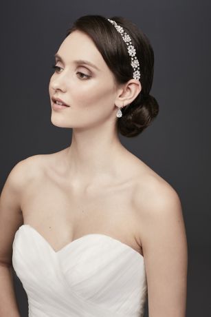 Crystal clusters give this faceted rhinestone headband a modern edge that brings beautiful sparkle to your wedding look. Wear as a headband or remove the ribbons to wear as a hair vine.