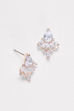 A pear-shaped crystal gives way to a layer of crystals on these chic statement stud earrings.