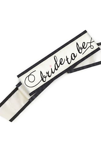 Dress up the bride to be for her bachelorette party, bridal shower, or wedding rehearsal with this satin sash embroidered with "bride to be" in fanciful lettering. The ivory satin sash is embroidered in black lettering with a pink heart accent and is trimmed in black grosgrain ribbon.