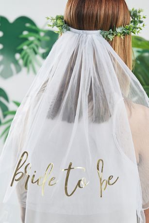Make the leading lady feel extra-special with this gold-foil "bride to be" veil. A faux-eucalyptus crown adds an eye-catching botanical element.