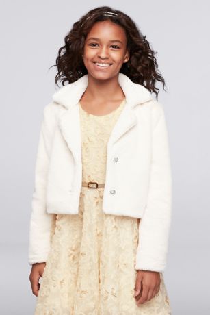 The perfect topper to any party dress, this cute faux-fur jacket is finished with heart-shaped buttons.