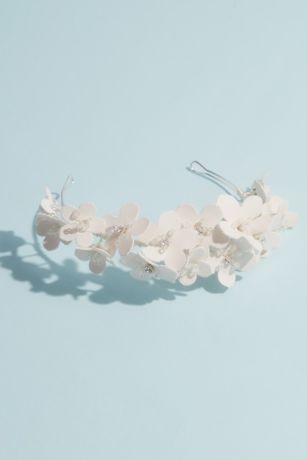 Hey, cool bride! Adorn your 'do with this sweet-and-edgy headband, flourishing with 3D faux leather flowers.