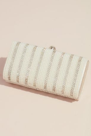 A chic way to stow your essentials, this pearl-and-crystal striped minaudiere will add modern elegance to your wedding dress or evening gown.
