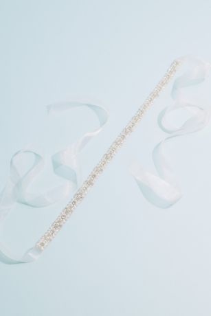 This slim sash features medallions of lustrous faux pearls and shimmering crystals. A pretty ribbon tie completes the look.