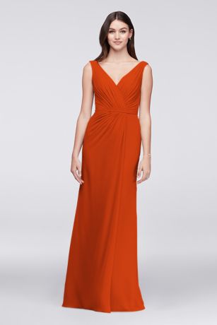 Faux-Wrap Pleated Chiffon Bridesmaid Dress