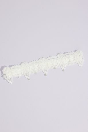 Filigree flourishes of fine lace and dainty dripping crystals adorn this pretty garter.