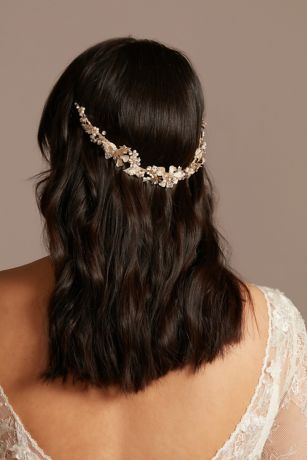 At once delicate and bold, this headband is crafted from filigreed leaves and clusters of crystals and pearls.